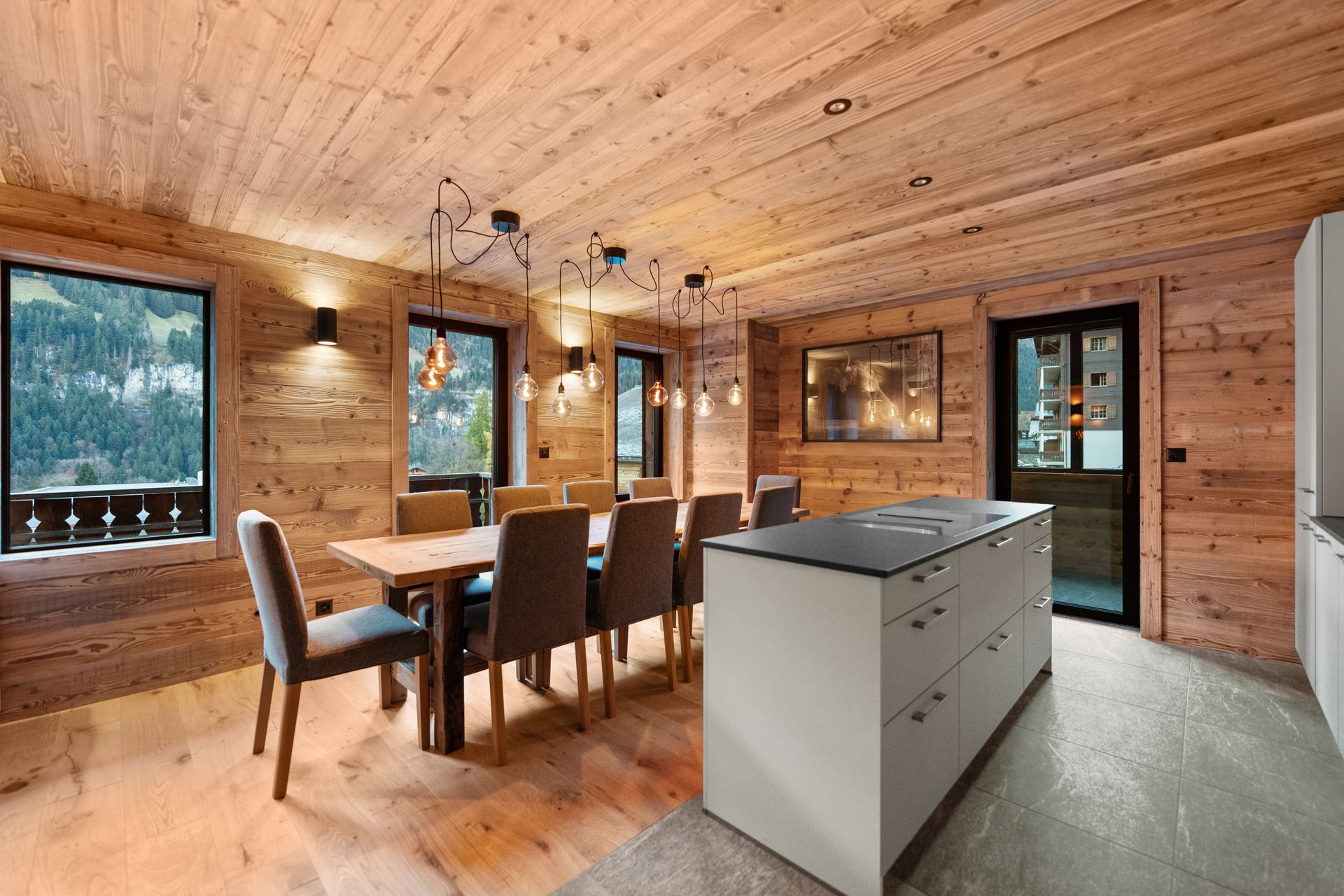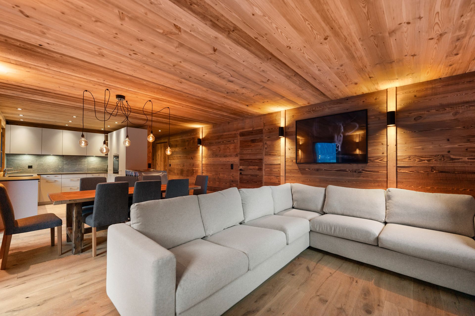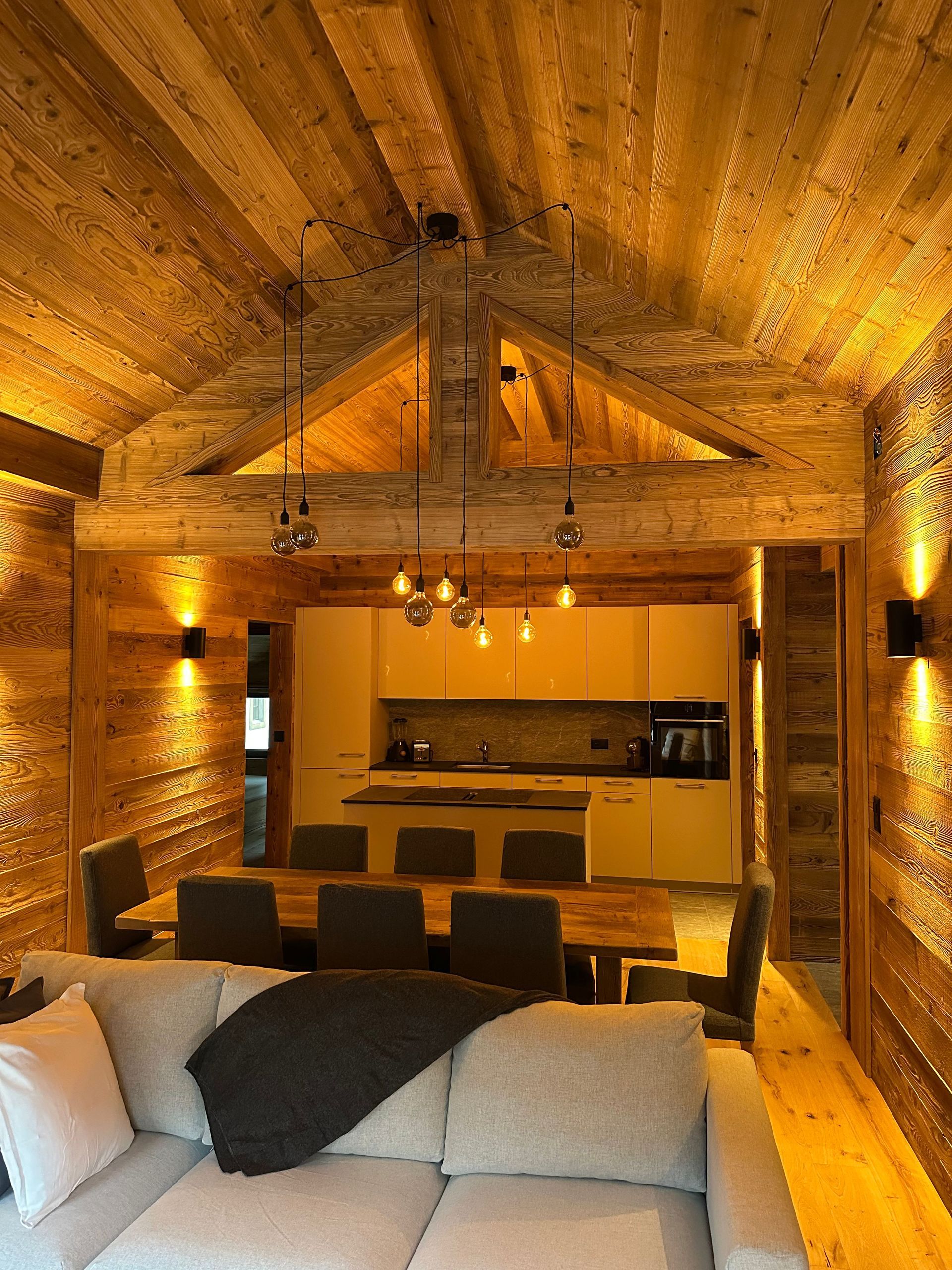 Ce chalet unique réunit 7 appartements élégants, allant de 69 à 144 m², pour une surface totale de 734 m², idéale pour accueillir familles et groupes dans un cadre raffiné. Pensé pour allier confort et intimité, chaque appartement offre un espace généreux au cœur des montagnes. Le chalet dispose également d’équipements exclusifs : salle de massage, sauna, spa, salle de cinéma privée et local à ski, pour une expérience de séjour inoubliable mêlant détente, loisirs et sérénité. Sur demande, il est possible de réserver plusieurs appartements par étage pour accueillir des groupes ou des familles jusqu’à 37 personnes, garantissant ainsi un séjour en toute convivialité et confort.